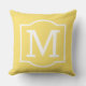 クラシックススタイリッシュクエア屋外アクセントピローは、明るい黄色の背景色と白い色のシンプル装飾枠を持つモノグラムのイニシャルを特徴とする。外カスタマイズの装飾に合わせる背景。