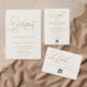 モノグラムロマンチック手書きの書道ミニマルシンプルエレガントフォーマルクラシック結婚式招待状トラディショナルの結婚名刺ベージュと金ゴールド金ゴールド箔エレガント招待状
