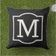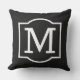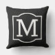 クラシックススタイリッシュクエア屋外アクセントピローはモノグラムのイニシャルを特徴としシンプルて、黒い背景色と白い色の装飾フレーム。外カスタマイズの装飾に合わせる背景。