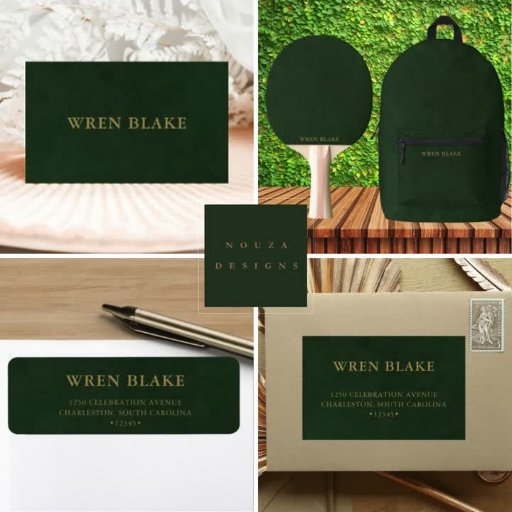 濃い緑エレガントのレザーテクスチャと金ゴールドスクリプトのアクセントを備えた差出人住所ラベル。この洗練されたデザインは、あなたの通信に洗練されたtouchを追加し、それはプロフェッショナルや個人的な使用に最適である。