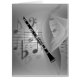 クラリネットミュージカルアクセント。高音のモダンクレフ、 音符記号、音楽のノートと特集のミュージカル楽器とを持つ上品でミュージカルをテーマにしたカンバス;クラリネット。白黒.