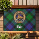 クランBlairクレストバッジに囲まれてストラップとバックルタータンチェックの背景。カスタム文字。