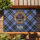 クラークのクレストバッジに囲まれたストラップとバックルタータンチェックの背景。カスタム文字。
