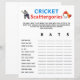 ⭐️それが何であるか:クリケットScatteregoriesゲームはパーティーゲームである。以下の各カテゴリについて、「こうもり」の各文字で始まる単語をリストするのに2分ある。その答えを持つプレイヤーが一人の場合はポイントが授与される!ほとんどの点が勝つ!