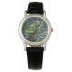 「クリスタルの透明度:葦の上の緑のガラスのカエル」 腕時計