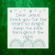 あなたモノグラムのは自分の祈りの言葉を挿入するためもしに、金属プリント。緑の虹とハート、白い背景の緑の文字、州、イエス、あなた親愛は星のため感謝していには明るく、この可愛いbohoテーマ。夜保中は無事だ。