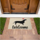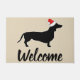 サンタの帽子及び単語"歓迎"を身に着けているクリスマスのダックスフント。 この玄関マットはまた最近のための素晴らしいギフトを結婚しますまたは新しい世帯主作ります!