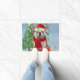クリスマスのプレゼントで雪の中のイギリスのブルドッグ ドアマット