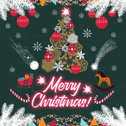 このデザインは、黄金のクリスマスツリー、クリスマスライト、雪の結晶と何千もの星を持つダークグリーンの背景を持つ喜ばしいクリスマス。