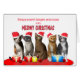 サンタハおもしろいットを着て5匹の猫が連続して座っている可愛らしいクリスマスカード。猫の上にメオイ・クリスマスという言葉があるんだ。どんな猫好きでも好きになれる!ご主人と娘のクリスマスカード。