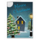 木、雪、家、通りランプのクリスマスグリーティング