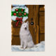 美しいサモエイのホリデーアート。サモエイは、サンタが到着するために雪の覆われたポーチの上で待機し、サンタのクッキーを守る。素晴らしいクリスマスギフト、クリスマスカード、郵便料金、アパレルなど。