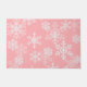 ピンクの背景色とフェスティバルクリスマスの休日の雪の結晶のプリントで表示されたDoormat。こカスタマイズこのマットや買そのまま。