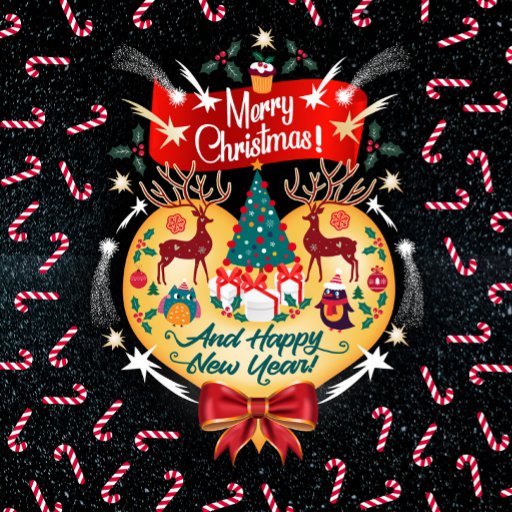 エレメント、鹿、フクロウよくはしゃぐル、ペンギン、クリスマスツリー、ヤドリギ、カップケーキ、星、プレゼント、弓、大きな黄金のハートと新年の特別な願いを持つ楽しいクリスマスデザイン。