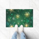 クリスマスゴールデンスノーフレークonグリーンバックグラウンド ドアマット