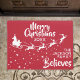クリスマスとサンタクロース信じの魔法で、サンタのトナカイのシルエットと白いシルエットを描いたクリスマスのドオーマを星の軌跡に飛んでいるて、どれ位を見せよう。白い手書き読のレタリングの上のキャプション。文字は、あなたの希望、年、家族の名前やビジネス名と簡単にカスタマイズできる。この装飾はあなたの家のための完璧なクリスマスの装飾を作る