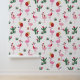 クリスマスピンクフラミンゴパーティー |休日パターンピールとスティック壁紙は、花のサボテンの植物の中のパーティーバルーンとクリスマスハットとフラミンゴのパターンを特徴とする。クリスマスデコール、クリスマスパーティー、ホームデコール、ホリデーデコール、ホリデーパーティーに最適。Evco Holidays www.zazzle.com/store/evcoholidaysによって作成