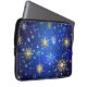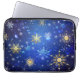 クリスマスブルーバックグラウンドと黄金の雪片 ラップトップスリーブ