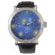 クリスマスブルーバックグラウンドと黄金の雪片 腕時計