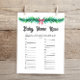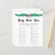 クリスマスベビー名レースベビーシャワーゲームカードは誰でも作る。クリスマスベビー名レースベビーシャワーゲームカードはあなたの休日をテーマにしたベビーシャワーにフェスティバルおもしろいをもたらす。このインタラクティブなゲームは、陽気なクリスマスのデザインを備え来て、アルファベットの各文字の赤ちゃんの名前を持つことに挑戦する。このゲームには、ホリー、オーナメント、雪片などのクリスマスをテーマにした要素が含まれる。保客はよくはしゃぐベビー名の挑戦を楽しむ。冬やクリスマスの赤ん坊シャワーに最適。おもしろいとフェスティバルの方法でゲストと喜びの祝束を取り付け!