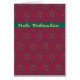 ドイツ語スタイリッシュで挨拶(Frohe Weihnachen)を持つクリスマスカード。フェスティバルの赤と緑に金ゴールド色のレタリングを持つボーブルと星のオールオーバーパターン。カードの内側に自分のメッセージを追加することもできます。
