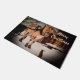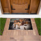 クリスマス星空の夜の農場の馬うさぎ雪 ドアマット