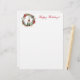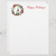 緑の服を着た小さな格言は、緑、果実、ポインセチアの花とフェスティバルリースの中に立ち、右に赤いスクリプトで"Happy Holidays"という言葉を持つ。フェスティバル、かわいい、あなたの休日の対応に最適!
