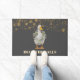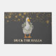 白いフェスティバルのアヒルの後ろに首飾りと金ゴールドの雪の輝きのまわりにのリースで飾られたクリスマスの休日の形式。コピーDuck the Holesは、あなたの家族の名前または選択のコピーに変更することができる。