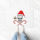 海賊スカルはサンタ帽にヨーホー帽を被書る帽子。交差したキャンディ缶のペアがスカルの下にある。クリスマスの海賊船をスカルの横に含む。