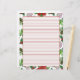 友人や家族へのホリデーレターを書くためのクリスマスの赤いラインの便箋に、ポインセチア、クリスマスローズ、ホリーベリー、松ぼっくり、ベイベリーなどの植物のホリデーイラストがインクと水彩で描かれています。