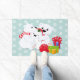 ユーカリの背景色と可愛いフェスティバルクリスマスポーラーベアプリントで表示されたDoormat。こカスタマイズこのマットや買そのまま。