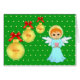愛、喜びと平和のカードの文字を持つ小さな天使と3つのクリスマス空白のボール。緑の星空の背景にエンジェルデザイン。