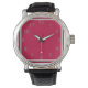 深紅でピューター色の顔とピューター色の数字を持つハンサムな時計が好きだろう。