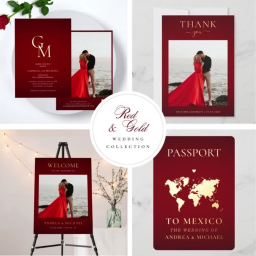 クリムゾンレッド金ゴールドビッグ・ネーム写真モノグラム結婚ズ 箔招待状