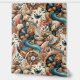 ボヘミアンインスパイアスタイルの自然、自由奔放で、イラストを描いた油絵は、花とクリーム、マスタードイエロー、ティール(緑がかった色)、マゼンタの背景にパターンや質感のミックスを描いた、お祝いやデコの贈り物に最適。