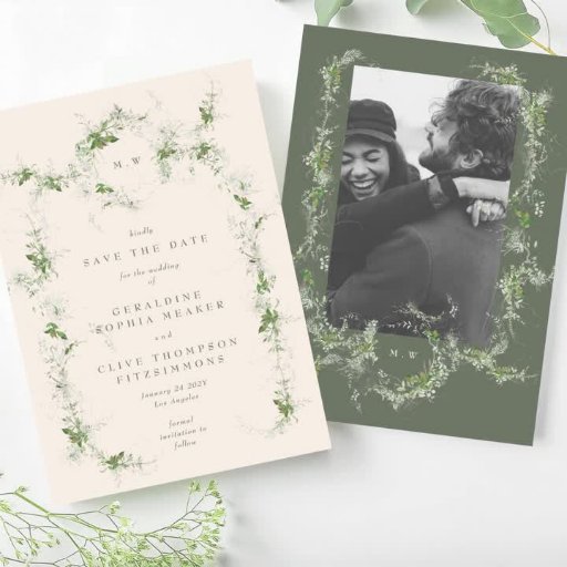 クリームサエレガントブサイトEucalyptus Monogram結婚's 出欠カード