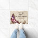 クリームサテンの背景のピンクの蝶 ドアマット