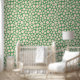 クリームドットグリーン抽象芸術パターモダンン壁紙は、緑色の背景にクリームの抽象芸術幾何学的ドットパターンを特徴とする。家の装飾、壁のアクセントとトリートメント、オフィスの装飾とパーティー装飾に最適。Evco Studio www.zazzle.com/store/evcostudioによって作成