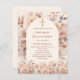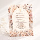 一モダン次スタイリッシュ交の招待。クリーム、桃の色の背景、アーチのフレーム、クリーム飾色の花付き。名前と詳細をカスタマイズして追加1枚= 1枚の招待状を印刷したエッジからエッジ