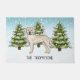 可愛い英語クリームオリジナルレトリバーのデステイのラブラドール漫画イラストレーションは犬を繁殖。3本の緑のモミの木と降り積もる雪が積もった冬のシーンに犬を置く。背景は青から白のグラデーション与えのデザインは、寒い冬の日に見える。名前にはパーソナル化可能な文字領域もある。