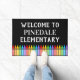 学内の底にクレヨンの列が並ぶウェルカムフォーマット!入室やオフィスへのドアに最適。私たちの教室の歓迎ドアマットも見る。