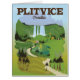 風景と有名な滝のプリティヴィツクロアチア旅行ポスター。