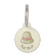 ピンクのリボンと弓で黄色のクロシェ帽。