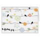 かわいらしい花によって囲まれるワイヤー-ヴィンテージの感じに坐っているクロドリ。