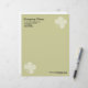 ページの右上と左下の隅に、縁から 0.5 インチのところに配置された、魅力的なクローバーのモチーフがあしらわれた、エレガントなビジネスレターのヘッダー。