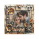 金ゴールドと銀の金属ギア、花と風化した背景を持つスチームパンクをテーマにした金属ウォールアート。パーソナライズお気に入りの領域に写真をアップロードする。カップルの記念日のためのロマンチックな贈り物、バレンタインデー、またはちょうど私はあなたを愛していると言うために。