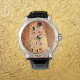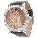 1907年頃の油彩画「接吻」 をデザインした腕時計(グスタフ・クリムト 1862-1918)。グスタフはオーストリアで生まれた。アーツ・アンド・クラフツ運動とアール・ヌーヴォー期の影響をうけた。クリムトは金箔の層を重ねて使用した。優しい抱擁の中の男女。