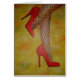 Goody Two Shoesはオリジナルの赤と黄色絵画の女性の魚網ストッキングと明るい赤いヒールの靴を着ている。赤いユニーク靴の日のキャンペーンまたは赤い靴の散歩に理想的なファッションテーマを持つ贈り物。レギンス、ホシアリー、ファッションを愛する人、見た目を愛する人グランジたち、またはストッキングやハイヒールのfetistsに最適。© 絵画の2008