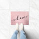 グラデパーソナライズされたーションピンクのローズデザイン、フェイクグリッター質感、書道フェイクフォントの豪華なドアマット金ゴールド。お客様の名前またはその他の製品をカスタマイズして文字します。