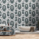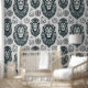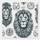 グラファイトスケッチスタイルに美しい獅子頭のセットを備えた豪華な壁紙。